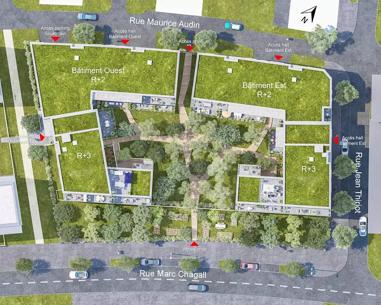 Les Promenades vous accueillent au cœur du premier écoquartier messin, à quelques pas du parc du Sansonnet. Ici, la nature se vit au quotidien : pelouses, arbres décoratifs, pommiers, poiriers et pruniers dessinent un cadre agréable et apaisant. Vous pouvez respirer, vous promener, profiter d’un potager partagé, un vrai lieu de rencontres et de convivialité.