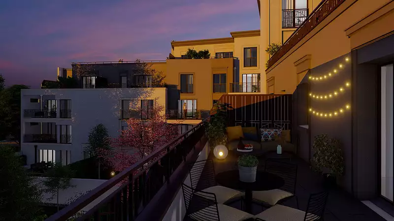 Les appartements sont prolongés d’espaces extérieurs : balcon, terrasse ou jardin privatif. De plus, un parking souterrain est accessible aux résidents, et 2 locaux vélos, en rez-de-chaussée du bâtiment.