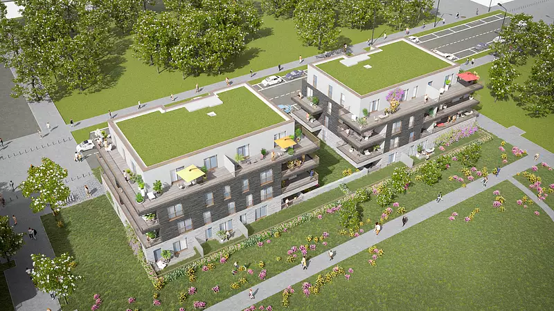 Ce programme immobilier se compose de 27 appartements allant du T2 au T6. Ces deux résidences s’étendent chacune sur 3 étages avec terrasses ou balcon. Cet ensemblier urbain repose sur un sous-sol avec garages et parkings. Grâce à l’usage de matériaux en briques ayant subi un traitement minéral, les façades s’intègrent parfaitement dans l’environnement existant. L’objectif étant de créer une continuité riche de sens entre l’ancien site et le nouveau. Cette sobriété se retrouve d’ailleurs dans le choix des couleurs, oscillant entre diverses nuances d’un gris élégant.