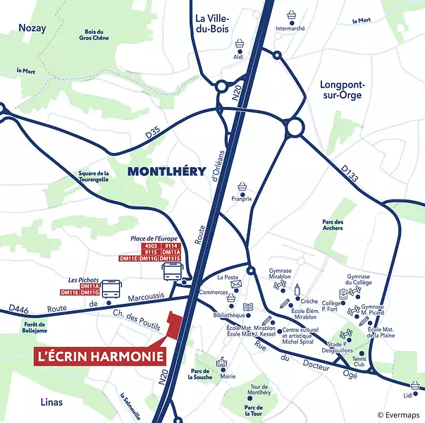 • Plusieurs lignes de bus à moins de 300 m(a), facilitant l’accès à la gare RER C de Saint-Michel-sur-Orge (en 10 min**).