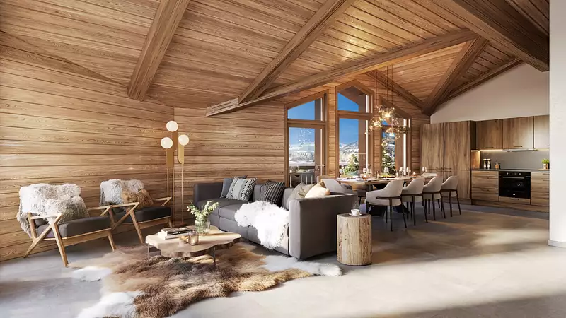 Avec son allure de chalet traditionnel, L’HÉRITAGE est un programme neuf haut de gamme de 21 appartements (du T2 au T5) avec des prestations de standing : une salle de sport, des parkings couverts et des caves avec des casiers à ski aménagés et indépendants pour chaque logement.