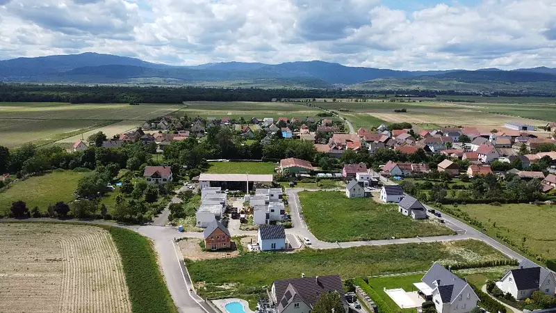 ENTRE COLMAR ET MULHOUSE, PROCHE MEYENHEIM ET ENSISHEIM, A MUNWILLER, AU CALME, PARCELLE D'ANGLE DE 341 M² (LOT 21), CONSTRUCTIBLE IMMEDIATEMENT.VIABILISEE ET BORNEE, VENDUE LIBRE DE CONSTRUCTEUR ET D'ARCHITECTE. SOUS-SOL AUTORISE, TOITURE AU CHOIX (2 PANS, 4 PANS, PLATE). VENTE DIRECTE PAR L'AMENAGEUR, PAS DE COMMISSION D'AGENCE.