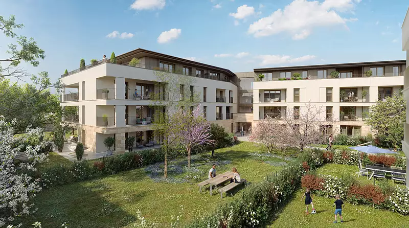 Ce programme intimiste, niché dans un îlot verdoyant, propose des appartements du studio au 5 pièces, tous prolongés par un espace extérieur (balcon, terrasse, loggia ou jardin). Les volumes sont généreux, lumineux, et les prestations haut de gamme : plancher chauffant, volets roulants motorisés, interphonie connectée, isolation renforcée, double orientation…