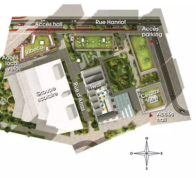 Dans la continuité du quartier d’affaires, à proximité immédiate de la Grande Arche, West Village poursuit son renouvellement urbain et propose Tribeca, une nouvelle résidence au cœur du quartier des Groues, mixant logements, bureaux et activités, commerces et équipements publics et privés. Accessible depuis le boulevard de La Défense réaménagé et facilité par les nouvelles connexions (avec notamment le prolongement du RER E*, la gare de Nanterre-la-Folie et la ligne 15* en 2030), ce nouveau quartier vient compléter les essentiels, tout proche : l’université, le théâtre des Amandiers, La Défense Arena, les équipements sportifs…