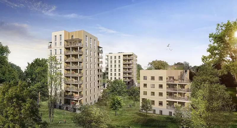 Chaque logement dispose d'un balcon ouvrant sur le Bois Sauvage ou sur le coeur d'îlot arboré pour profiter pleinement d'un environnement verdoyant.