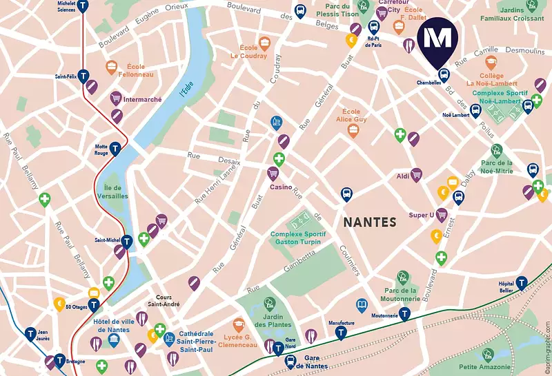 Bénéficiant d'une localisation privilégiée au sein d’un quartier familial et recherché, les résidents pourront profiter de belles balades le long des quais de la Loire et des espaces verts environnant. Ils trouveront tous les essentiels du quotidien à seulement quelques minutes à pied : commerces, pharmacie, boulangerie et établissements scolaires. Le centre-ville est à seulement 9 min en voiture et l’accès au périphérique Nantais à 7 min. Côté transport, l'arrêt de bus "Chambelles" de la ligne 10, au pied de la résidence, permet de rejoindre la gare de Nantes en 18 min.