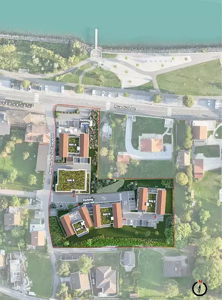 Cette magnifique résidence de 38 logements, présente une situation idéale et rare à deux pas du lac, de la plage de Grande rive, des restaurants et à moins de 2 km de l'embarcadère d'Evian-les-Bains permettant de rejoindre la Suisse voisine et notamment Lausanne.