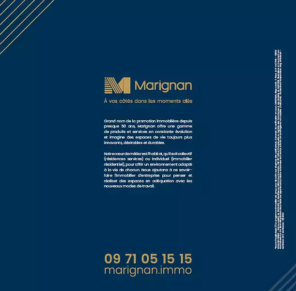 Remise exceptionnelle pour toute réservation signée entre le 15/01/2026 et 28/02/2026 inclus régulièrement réitéré par acte notarié concernant la résidence "NICE'ART" à NICE (06). Dans la limite des stocks disponibles - offre non cumulable avec toutes autres offres Marignan en cours ou à venir. Voir conditions auprès d’un conseiller ou sur marignan.com.