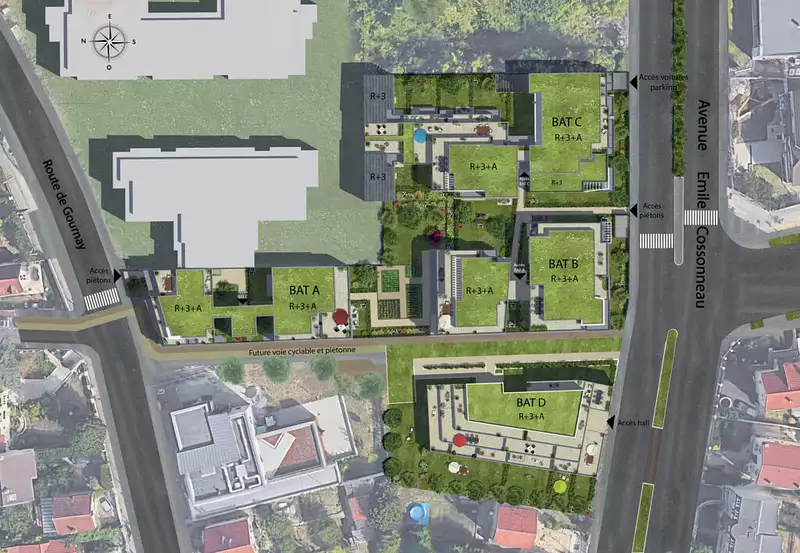 Noisy-le-Grand. À 900 m des bords de Marne et à 9 min en bus de la gare RER A qui accueillera fin 2025 les lignes du métro 15 sud et 16 du Grand Paris Express. Ce programme immobilier neuf Les Nouveaux Constructeurs s'affirme par le biais d'une architecture contemporaine qualitative. Appartements neufs du 2 au 4 pièces avec balcon, terrasse, jardin individuel. Multi-exposition et doubles prolongements extérieurs privatifs pour certains logements. Programme RE2012 avec parking privatif en sous-sol, mais aussi jardin commun et potager partagé. Toutes commodités à proximité (écoles, commerces, services, supermarché, etc.). Arrêt de bus à 350 m. Gare RER A de Noisy-Champs à 1,7 km. Gare RER E des Yvris-Noisy-le-Grand à 4 km. Accès A4 à 2,3 km (en connexion rapide avec N104).