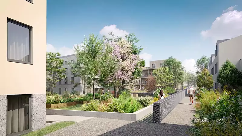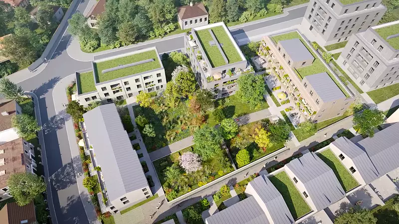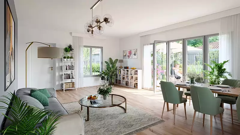 Au sein d’un quartier résidentiel et dans un cadre verdoyant, les appartements du 2 au 5 pièces bénéficient d’un espace extérieur avec loggia, terrasse ou jardin privatif.