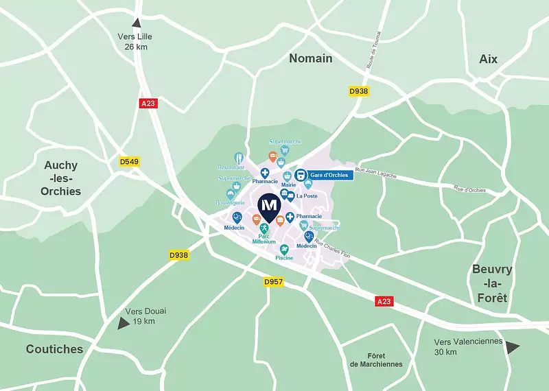 Entre ville et campagne, notre résidence se situe dans la petite commune recherchée d'Orchies au cœur d'un territoire champêtre typique. Véritable havre de paix, la résidence comprend 28 appartements, du 2 au 4 pièces, tous ouverts sur un espace extérieur : jardin privatif en rez-de-chaussée, balcon ou terrasse au dernier étage.