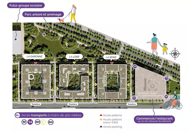 • un grand parc paysager et des cœurs d’îlots végétalisés, propices aux moments de détente,