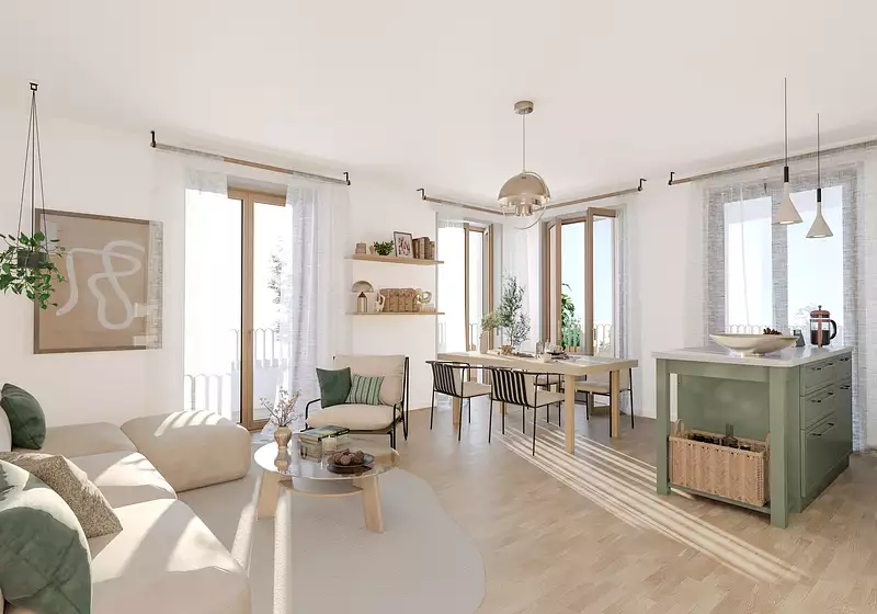 La résidence propose un large choix d’appartements, du studio au 4 pièces, conçus pour offrir des espaces lumineux et fonctionnels. Pour la plupart, les logements sont prolongés par de spacieuses loggias, idéales pour profiter d’un extérieur confortable en toutes saisons. Pensé pour simplifier la vie au quotidien, la résidence s’intègre dans un environnement vivant et convivial, avec :