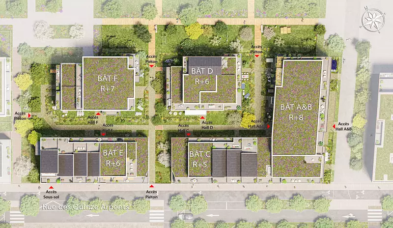 Des logements lumineux, du studio au 5 pièces duplex, avec terrasses, jardins ou toitures végétalisées.