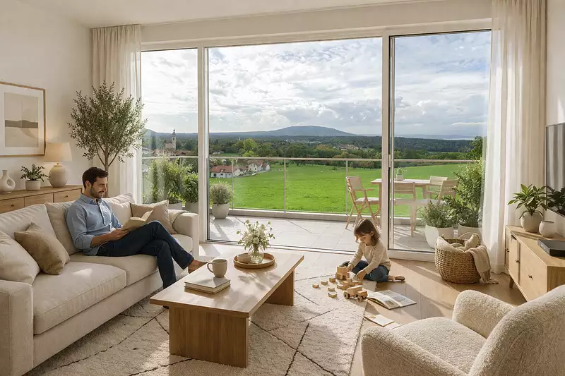 Ce lotissement à taille humaine s'inscrit dans un cadre de vie paisible, propice à un quotidien équilibré entre nature et mobilité. Les logements offrent des espaces de vie fonctionnels et confortables, avec :