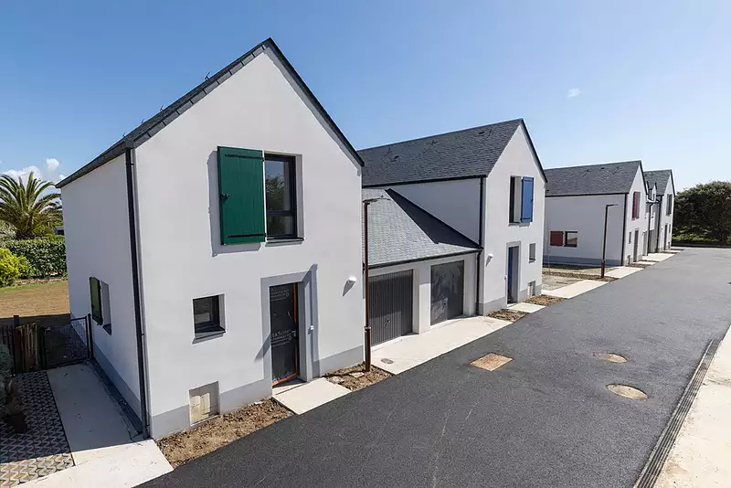 Des matériaux de qualité ont été privilégiés pour un réel confort d'usage. Chaque maison est personnalisée notamment par trois modèles de portes d'entrée colorées : en rouge dit « guérandais », très présent dans le bourg, en bleu, clin d'œil à l'océan et en vert en référence à l'environnement verdoyant du lotissement.
