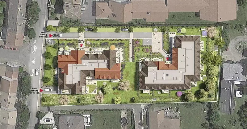 D’architecture classique, les deux bâtiments de la résidence prennent des airs de grandes maisons, habillées d’enduit clair et de pierre. Les appartements, profitant de très belles expositions et de vues agréables sur jardins, sont pour la plupart prolongés par un balcon, une terrasse ou un jardin privatif.