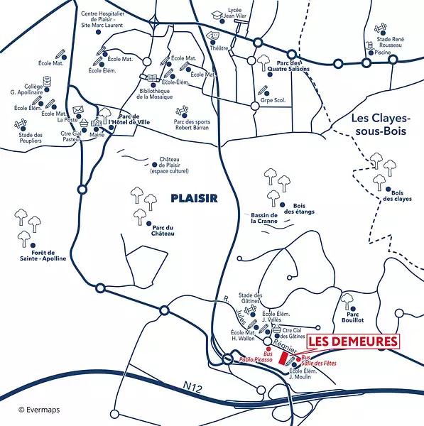 Les Demeures s’inscrivent au cœur des Gâtines, un agréable quartier résidentiel de Plaisir, prisé pour sa proximité avec la forêt et sa facilité d’accès via la N12. Au calme d’une rue pavillonnaire, la réalisation dispose de toutes les commodités à portée de main.