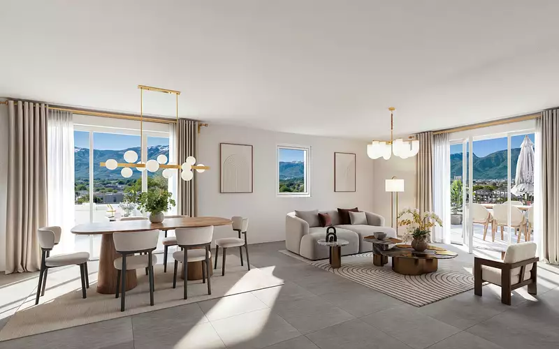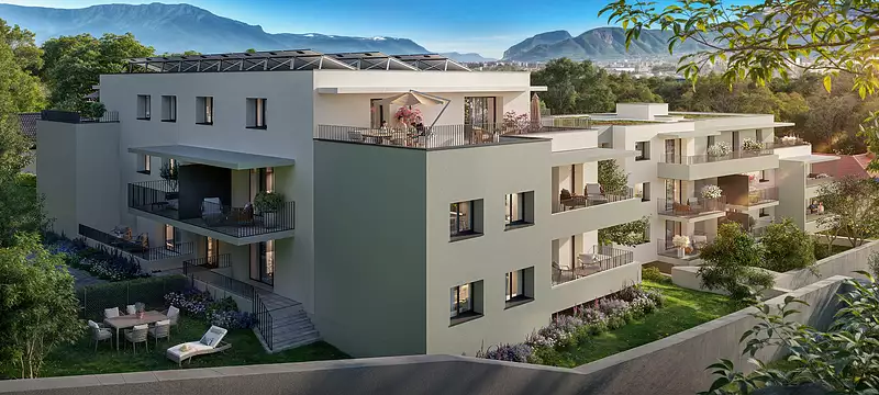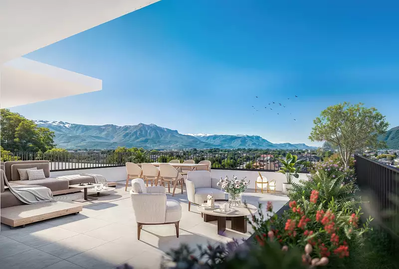 • Vues panoramiques : de larges terrasses et des appartements en attique ouvrant sur des panoramas spectaculaires vers la Grenoble et les massifs alpins.