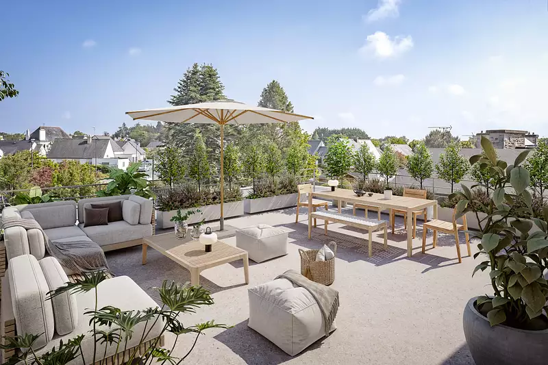 Dans une rue calme, la résidence BLEUENN s’articule autour de 3 bâtiments et d’un cœur d’ilot végétalisé, propice à la flânerie et aux échanges dans un esprit village. Vous disposez d'un choix d'appartements du studio au 5 pièces prolongés par des extérieurs aux belles orientations.