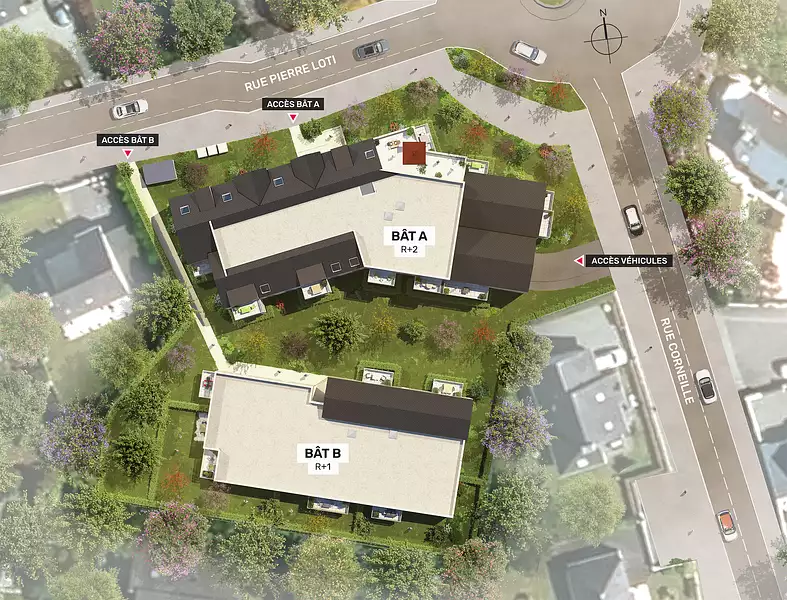 Cette nouvelle résidence propose 49 logements, du 2 au 4 pièces, répartis sur deux bâtiments élégamment intégrés dans leur environnement pavillonnaire. Chaque appartement bénéficie d'un extérieur privatif : balcon, terrasse ou jardin pour profiter pleinement des beaux jours. Les espaces sont conçus pour être fonctionnels et agréables à vivre, complétés par une place de stationnement par logement ainsi qu'un local vélo pour faciliter les déplacements doux.