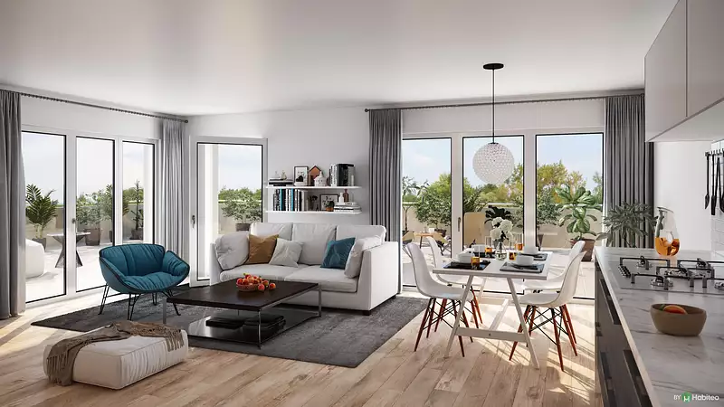 Vente en l'état futur d'achèvement. Logements livrés non aménagés et non meublés. Illustrations non contractuelles. Architecte : MIDI ARCHITECTURE. Perspectives : VIEWS.