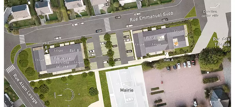Au pied de la mairie, à 2 min à pied du centre commercial Leclerc