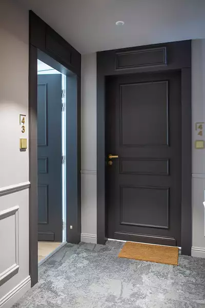 Elles associent béton peint blanc et pierre de travertin, soulignant ainsi le discours architectural.