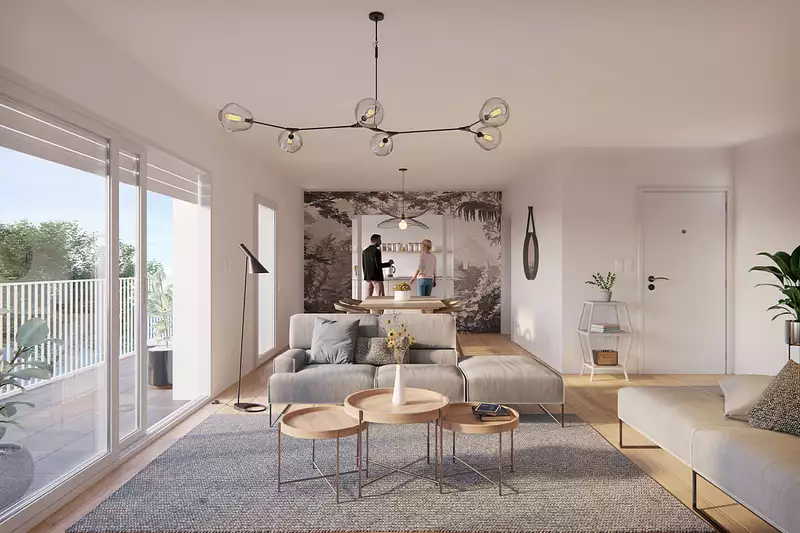 Ce programme immobilier propose de grands séjours exposés ouest s'ouvrant sur un écrin de verdure et apportent esthétisme et sérénité. Les T4 et T5 disposent d'une terrasse ainsi que d'une place de parking.