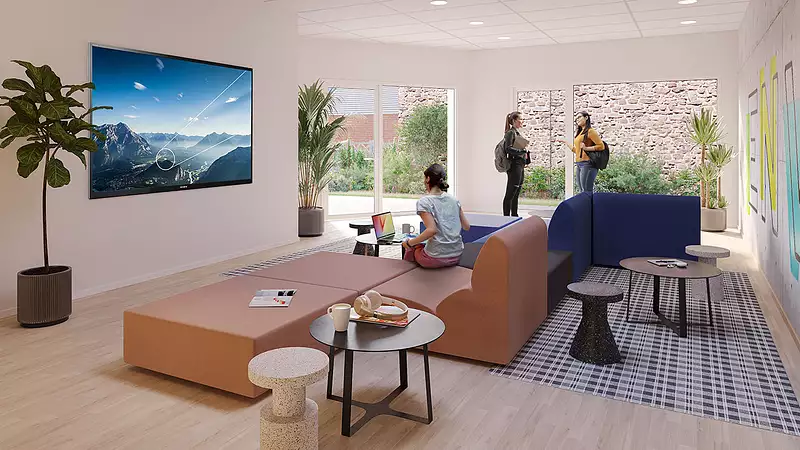 Découvrez une résidence à l'architecture contemporaine répondant aux attentes des nouvelles générations. Elle se compose principalement de studios de 20 à 31 m² mais aussi d'appartements conçus pour une vie en coliving. Au rez-de-chaussée, 125 m² d'espaces communs sont à la disposition des résidents : espace cuisine, laverie, coworking, espace détente.