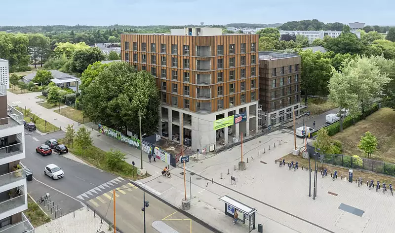 Quartier Rennes Beaulieu, nous vous proposons une nouvelle adresse au pied de l'arrêt de métro B Joliot-Curie-Chateaubriand. L’adresse du projet est idéale pour la vie animée des étudiants et jeunes actifs. Les lycées Joliot-Curie et Chateaubriand bordent le projet au Nord et au Sud tandis que le Campus Beaulieu, se trouve à 10 min à pied. Commerces et services du quotidien sont aisément accessibles avec notamment le Super U à 4 min à pied. A 15 min en métro ou à vélo, rejoignez le centre de Rennes, ses restaurants, bars et boutiques ! Le rez-de-chaussée se compose d'espaces communs à tous les occupants : cafétéria, salle d'étude, laverie, ... tandis que le toit du petit bâtiment accueillera un rooftop, un espace extérieur rare en centre-ville ! La résidence accueille majoritairement des studios mais quelques studios avec coin nuit et 2 pièces sont également disponibles. Le gage d'un investissement serein sur un secteur à fort potentiel locatif.