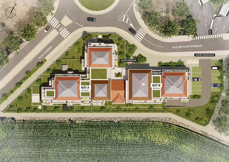 Cette nouvelle adresse élégante et contemporaine accueille 60 appartements seulement, du 2 au 4 pièces, conçus pour offrir un confort optimal. Les espaces de vie, lumineux et bien agencés, se prolongent par de généreux balcons, terrasses ou jardins privatifs selon les configurations. Une placette piétonne paysagée crée un véritable lieu de rencontres et de détente au cœur du projet. Pour un maximum de praticité, chaque logement dispose de sa place de stationnement.