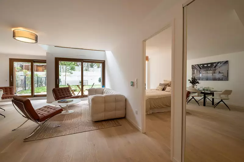 | 76,4 m² | 880 000 € | Rez-de-jardin, parking, terrasse (21 m²) | Plan et Infos |