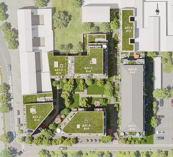 Le programme, isolé de l’avenue du Président Wilson, bénéficiera de locaux d’activités en pied d’immeuble, de généreux locaux vélo permettant notamment le stationnement de vélos cargos, ainsi que l’accès à un cœur d’îlot paysager.