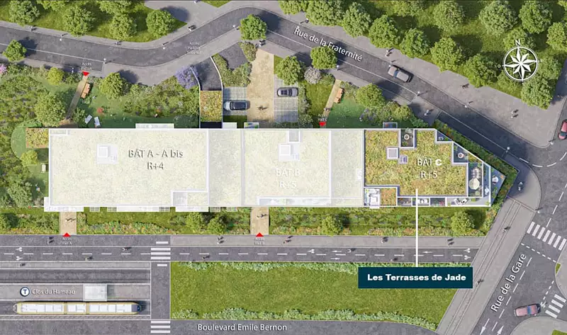 • Résidence intimiste de 19 logementsDu studio au 4 piècesTramway et bus « Clos du Hameau » au pied de la résidenceCommerces et services à moins de 5 min à piedConditions avantageuses grâce à l’accession à prix maitrisé