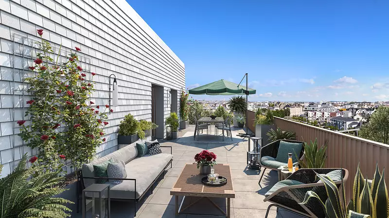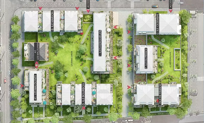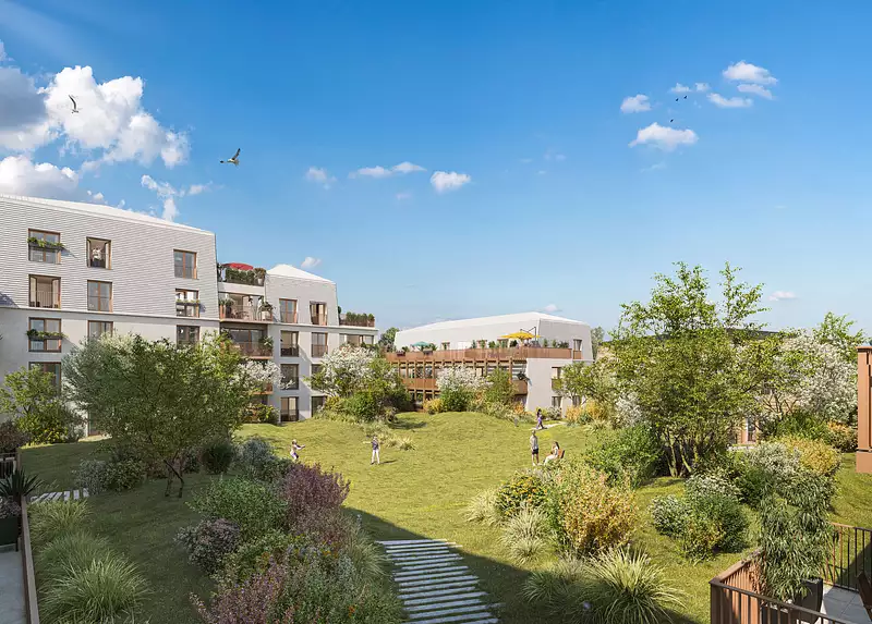 Ici, les résidences s’organisent autour d’un cœur d’îlot paysager, entre espaces verts, terrasses et jardins privés.