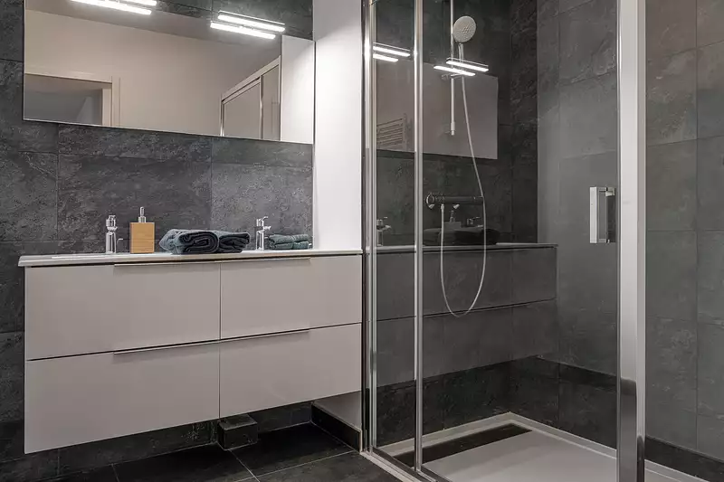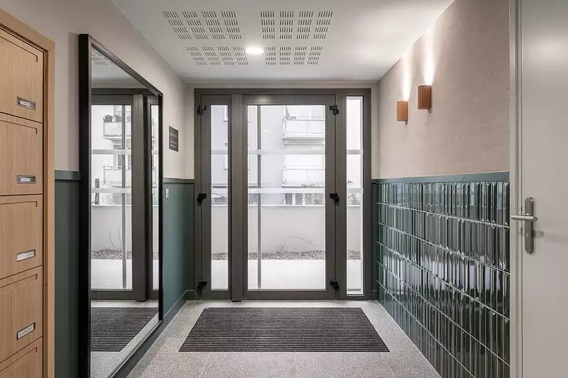 - Résidence fonctionnelle et sécurisée : portes palières 3 points, contrôle d’accès par badge, visiophone, ascenseurs, locaux à vélos, stationnements privatifs en sous-sol