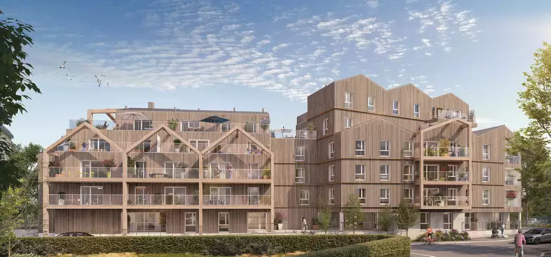 L’architecture de la résidence, moderne et élégante, s’intègre harmonieusement dans son environnement. Les jeux de volumes, les strates successives et l’alternance de matériaux confèrent au projet une silhouette dynamique et contemporaine.