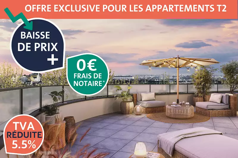 | 45,43 m² | 204 500 € | 179 790 € | 1er étage, Ouest, parking, balcon (5.13 m²) | Plan et Infos |