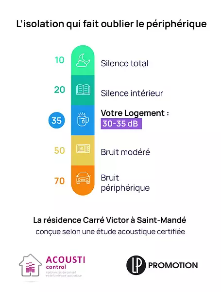 Résidence conçue selon une étude acoustique certifiée, garantissant un confort sonore optimal à l’intérieur des appartements.