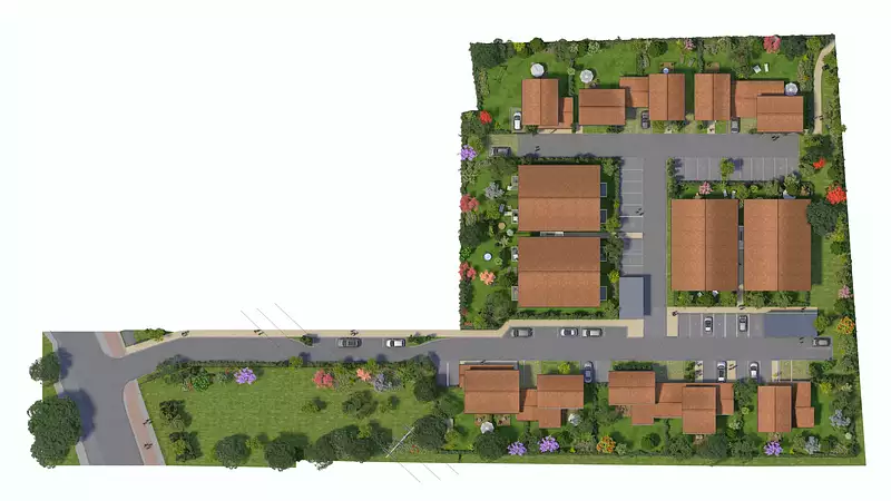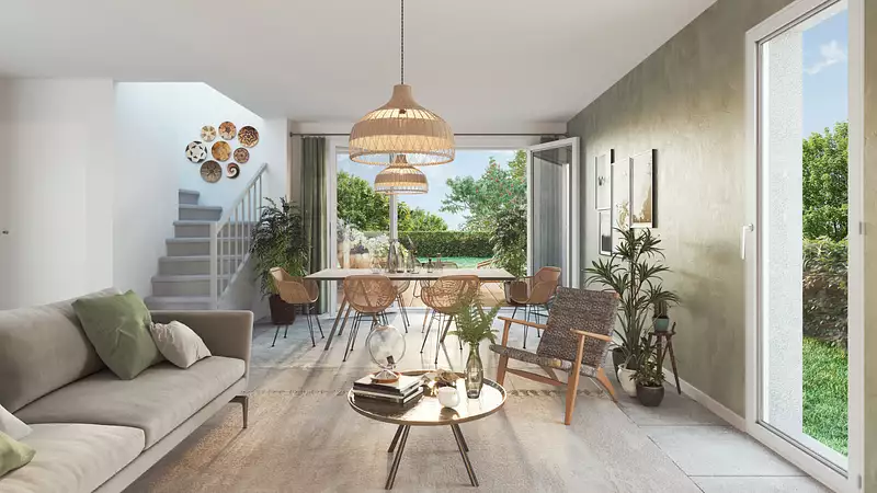 Les pièces de vie baignent dans la lumière naturelle grâce à de larges baies vitrées donnant sur un jardin privatif avec terrasse. De plus, un parking extérieur est disponible et certaines villas disposent même d’un carport.