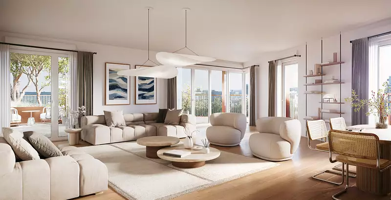 Profitez des vues sur la Seine dans cette nouvelle résidence aux lignes courbes, où chaque logement possède un extérieur généreux.