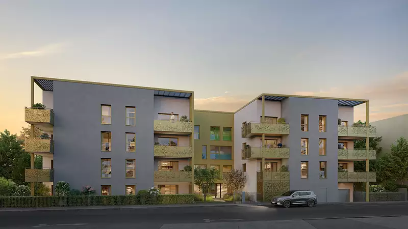 À quelques minutes de Lyon, la résidence ATRIA offre un cadre de vie lumineux et apaisé, où l’architecture contemporaine dialogue avec la nature. Pensé autour d’un cœur paysager traversant, le projet privilégie la lumière, les espaces extérieurs généreux et les rencontres naturelles. Des appartements confortables, majoritairement orientés sud, au sein d’un quartier vivant et connecté.