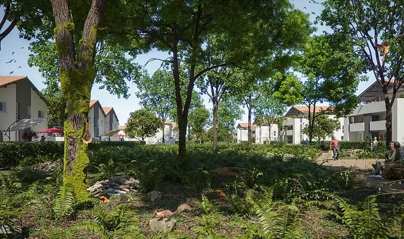 Parc arboré central et espaces partagés (jardins, boulodromes, jeux pour les enfants...)