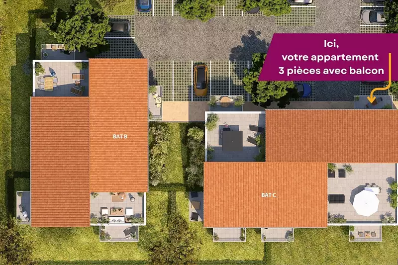 Derniers T3 : entre 60 et 61 m² - 1 parking - 1 balcon - WC séparé - 1 salle de bain équipée - pièce de vie lumineuse ouverte sur l'extérieur