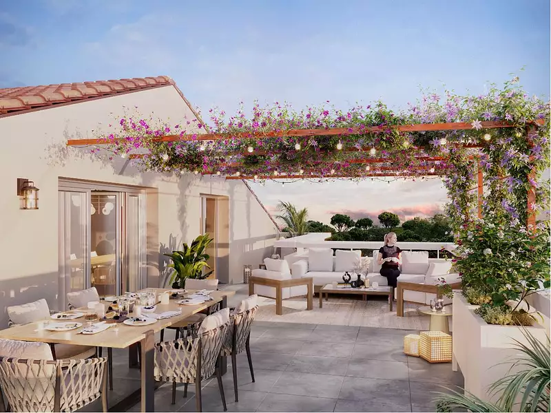 • Un grand 2 pièces de 54 m², sa terrasse de 16 m² où l’on savoure le calme,