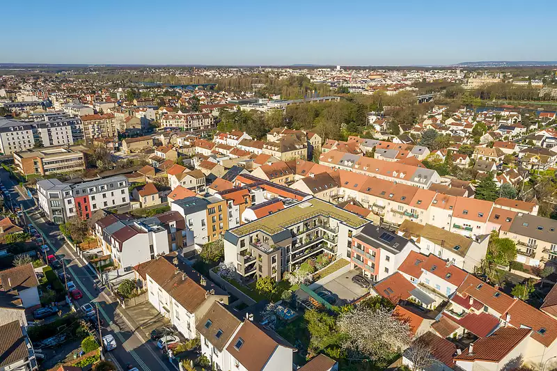 La résidence se trouve à 500 m du centre-ville et de ses nombreuses commodités ; Boulangerie (130 m), Auchan (450 m), Parc du Dispensaire (210 m), Cinéma (800 m), École maternelle (130 m), Crèche (300 m), Lycée (500 m). Pour vos déplacements vers Paris, vous trouverez l’arrêt de bus ligne 1 à 90 m et la Gare RER à 900 m.