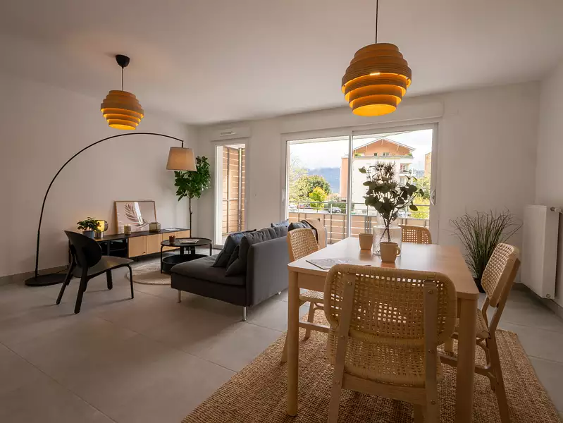 Tombez sous le charme de nos appartements, du T2 au T5, offrant de beaux espaces de vie lumineux et se prolongeant d'un vaste espace extérieur privatif (balcon ou terrasse), propice aux moments de partage.