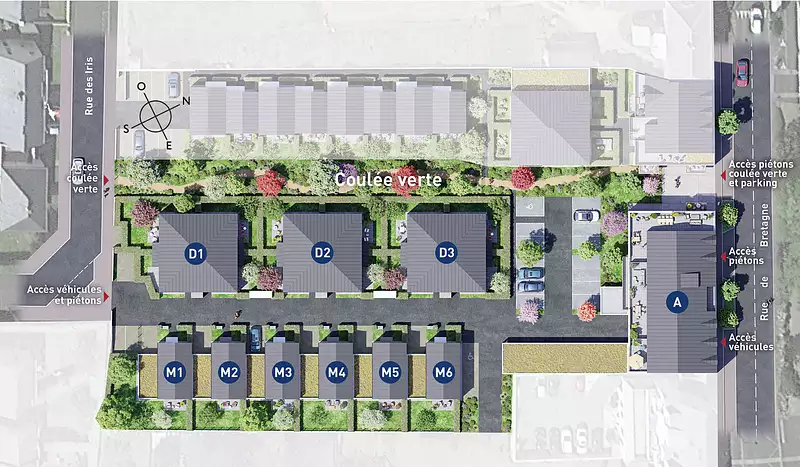 A l’entrée du « Domaine des Iris » découvrez un immeuble intimiste composé de 7 appartements, allant du 2 au 4 pièces. Chaque logement dispose d’un spacieux séjour avec cuisine attenante ou ouverte, et de chambres séparées pour un confort optimal. Ouvert sur l’extérieur, chaque appartement profite d'une terrasse ou d'un balcon.