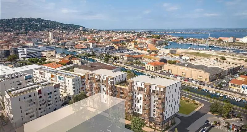 A l’entrée Est de Sète, sur le secteur au Sud du canal de la Peyrade la résidence Sun’Sète se situe au cœur d’un futur environnement diversifié et favorisant mixité ainsi que développement économique. On retrouvera, à proximité immédiate des logements haut de gammes, des bureaux/coworking, une résidence services séniors et des commerces.